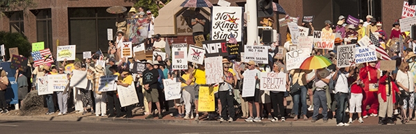 In New York City, thousands of people attended an anti-Trump protest/rally. Among those in attendance, and who spoke at the rally were New York City Mayor Bill de Blasio, Michael Moore, Alec Baldwin, Robert DeNiro, Cher, and Mark Ruffalo.